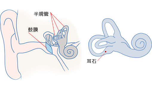 この体の向きや位置、動きについての情報は、耳の奥深くの内耳(ないじ)にある半規管(はんきかん)や耳石器(じせきき)といった器官が感じて、重力による垂直方向に対する頭の向きや傾き、回転などを脳に伝え、それを受けた脳が体の運動器官に命令をして体をまっすぐに保っています。そして、目からの視覚情報がそこに影響を与えます。